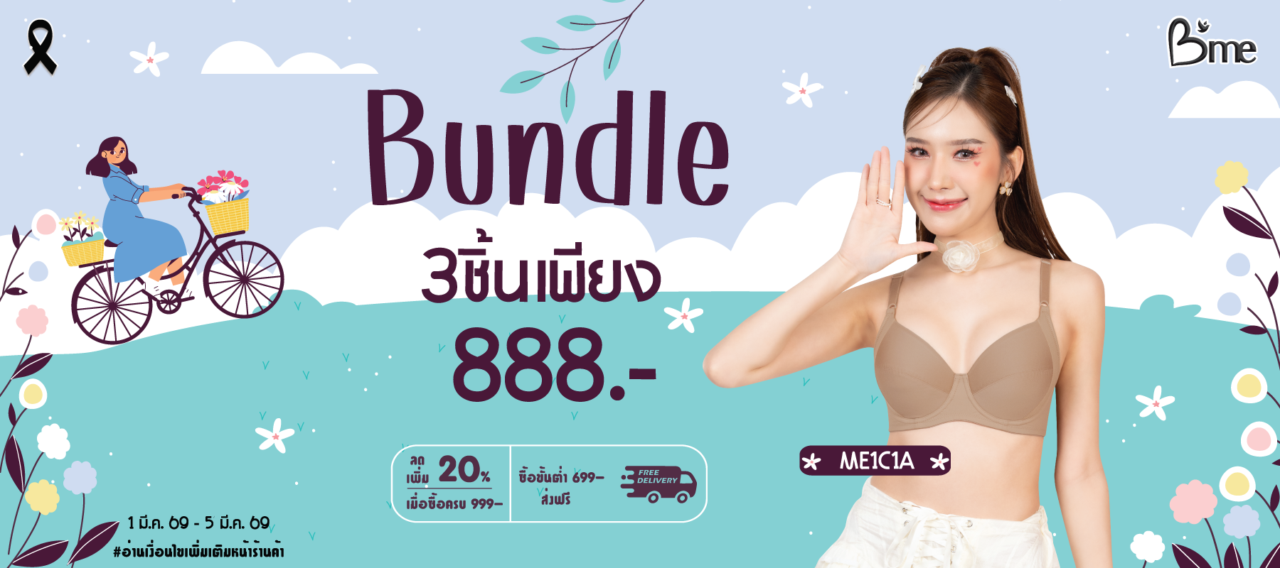 B'me เสื้อชั้นใน มีโครง รุ่น ME1C91 ฟองบาง Level 1