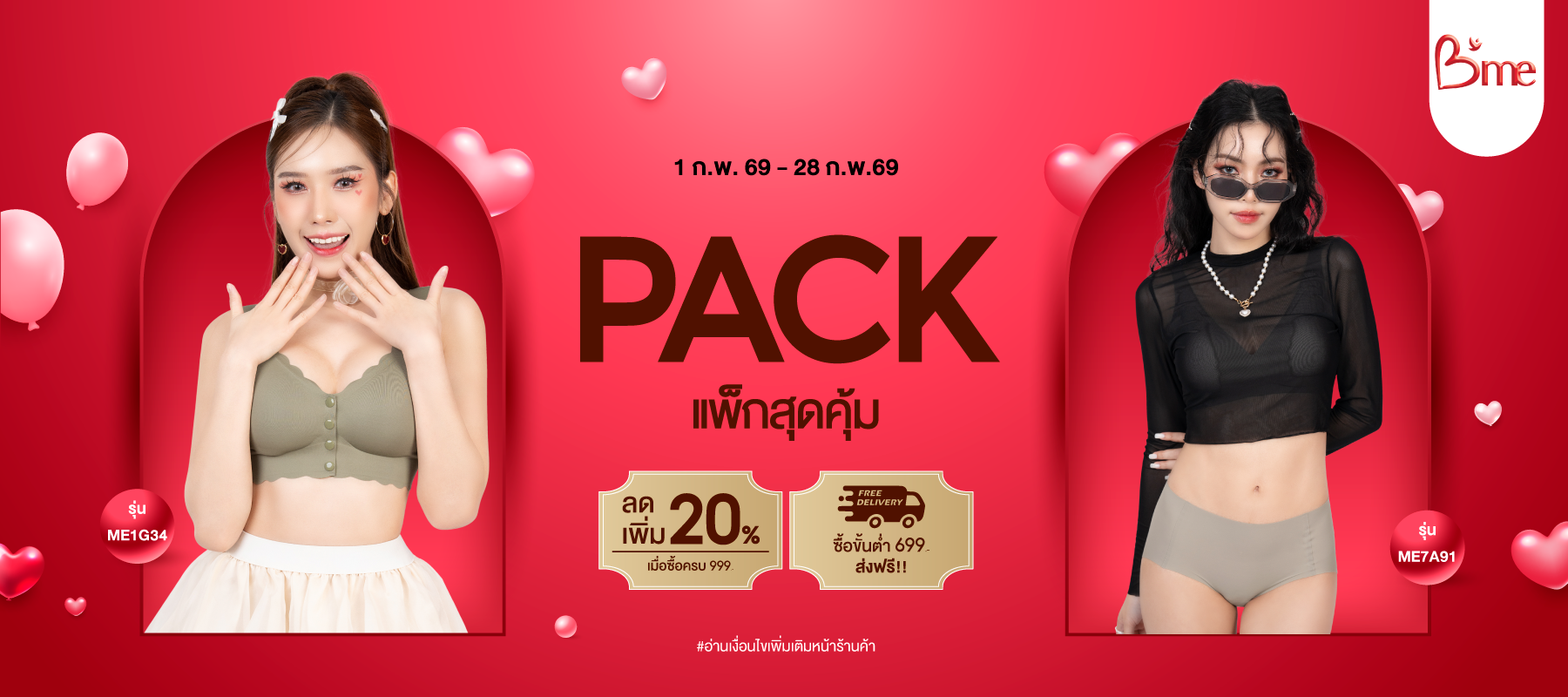 B'me เสื้อชั้นใน ไร้โครงถอดสาย รุ่น ME1C19 Eco Fashion ฟองกลาง Level 2 รุ่น เข้าคู่กางเกงใน รุ่น ME7A93
