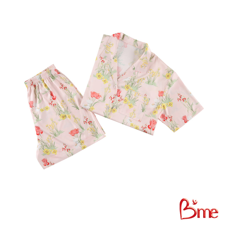 B'me ชุดนอนเสื้อแขนสั้นพร้อมกางเกงขาสั้น คอฮาวาย รุ่น ME8804 มี 4 สี สีโอลด์โรส สีฟ้า สีเหลืองอ่อน สีม่วงอ่อน M.2.26