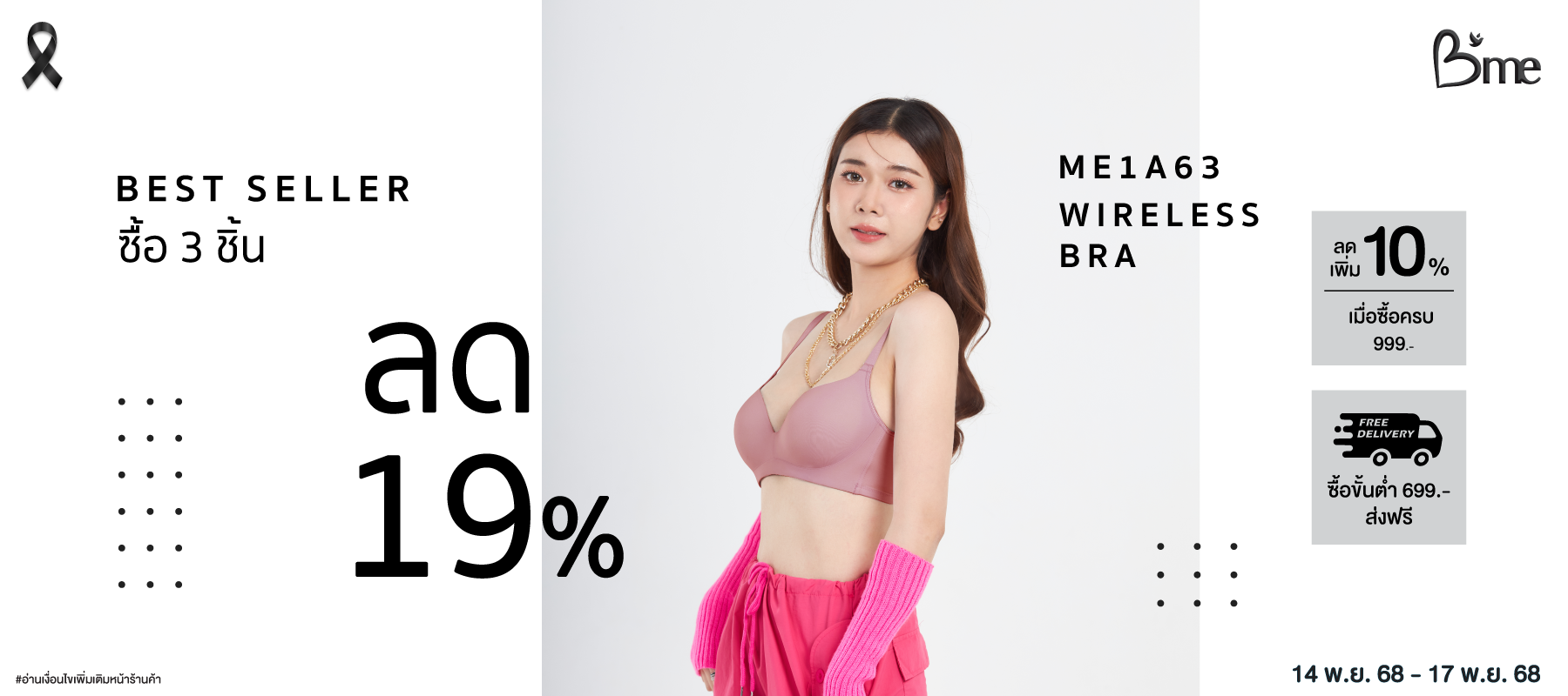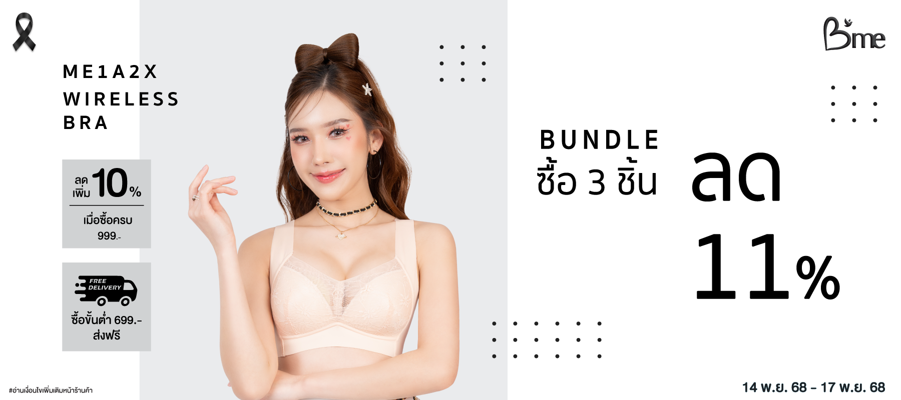 B'me เสื้อชั้นใน มีโครงถอดสาย รุ่น ME1K26 ไซซ์ใหญ่ ฟองบาง Level 1