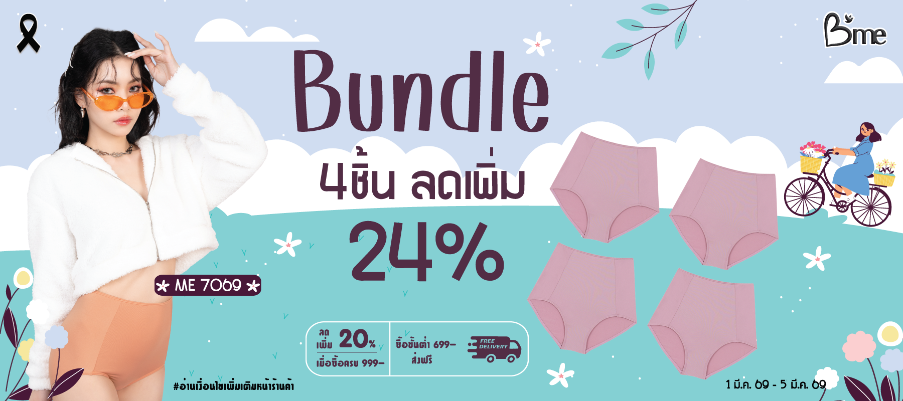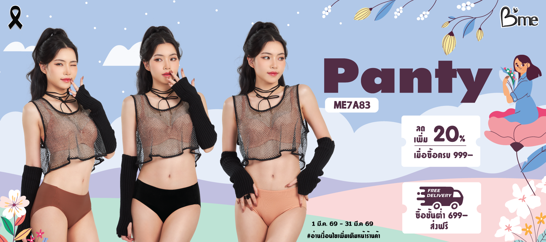 B'me กางเกงใน ไม่เข้าร่องก้น รุ่น ME7067
