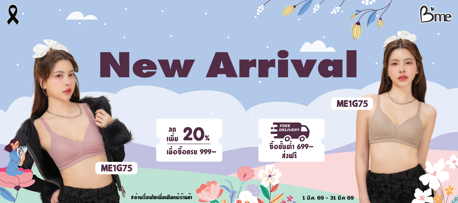 B'me เสื้อชั้นใน มีโครงถอดสาย รุ่น ME1A91 ฟองบาง Level 1