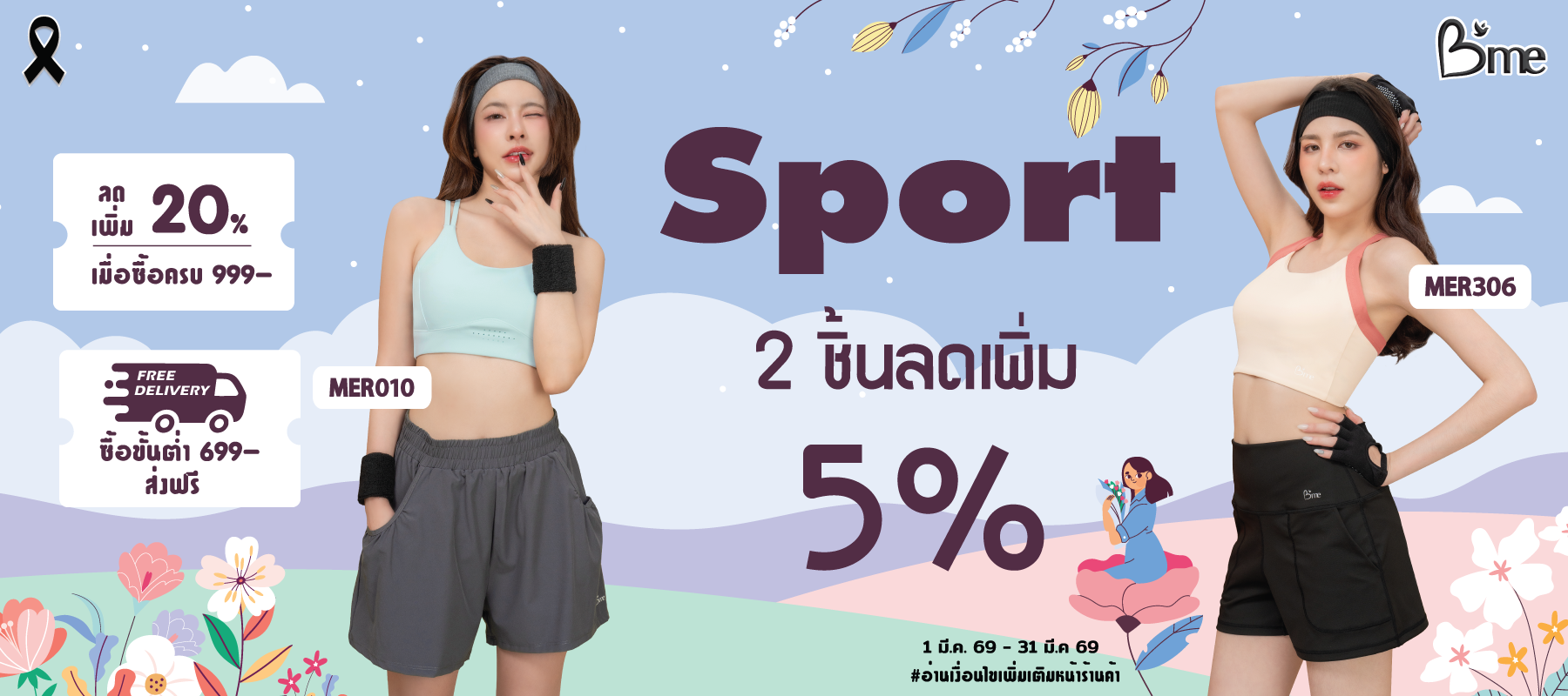 B'me กางเกงเลกกิ้งขาสั้น รุ่น MER309 สีดำ สีเทา สีม่วง