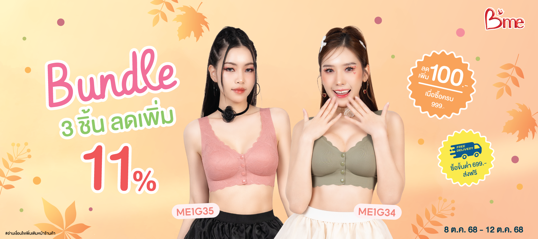 B'me เสื้อชั้นใน ซ่อนโครง รุ่น ME1K2 ฟองบาง Level 1