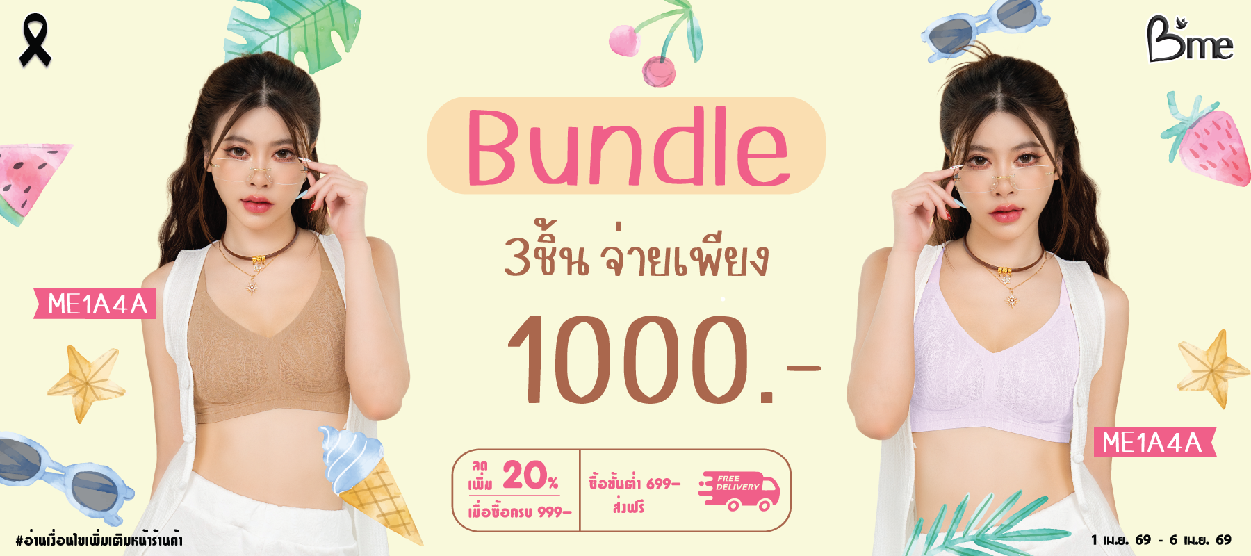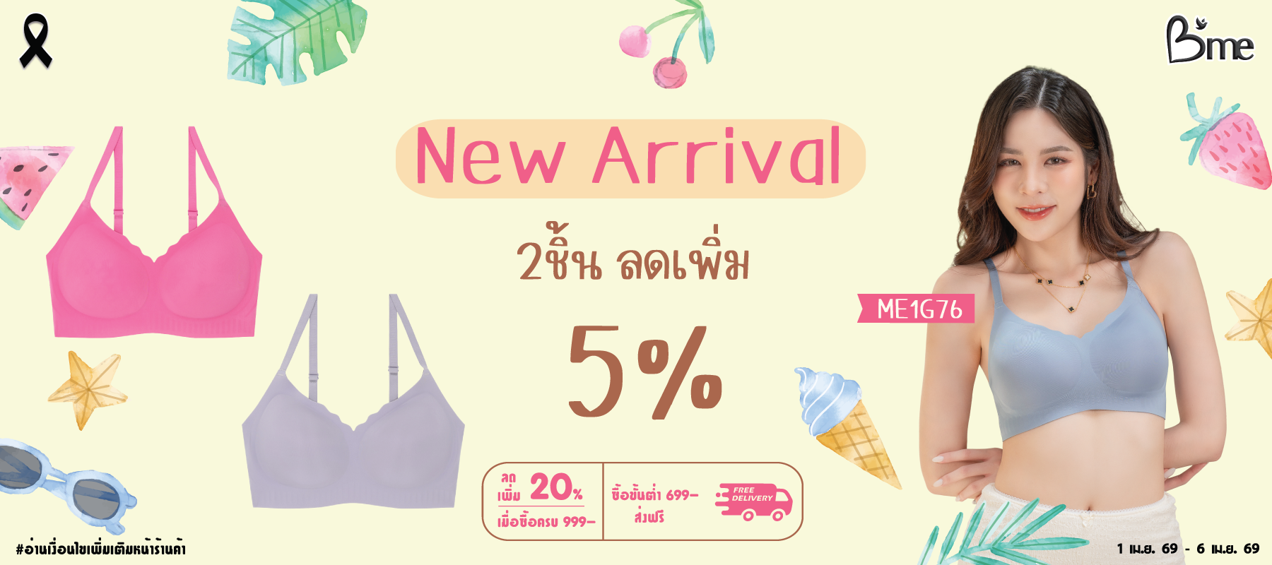 B'me เสื้อชั้นในไร้โครง level 2 ฟองกลาง รุ่น ME1G76 มี 4 สี : สีเขียว สีเทา สีครีม สีชมพู