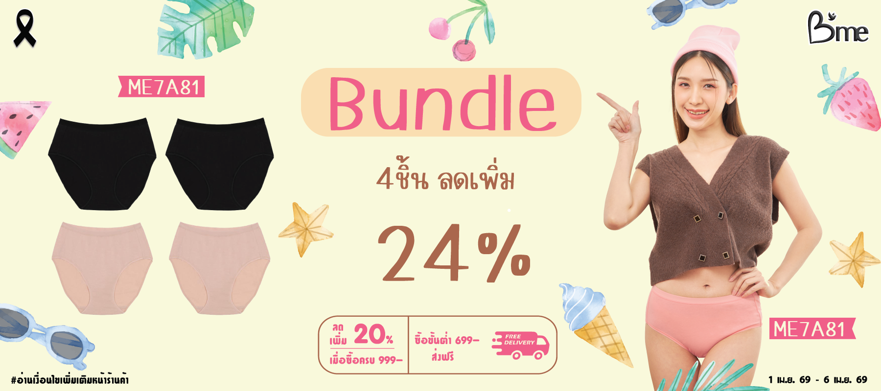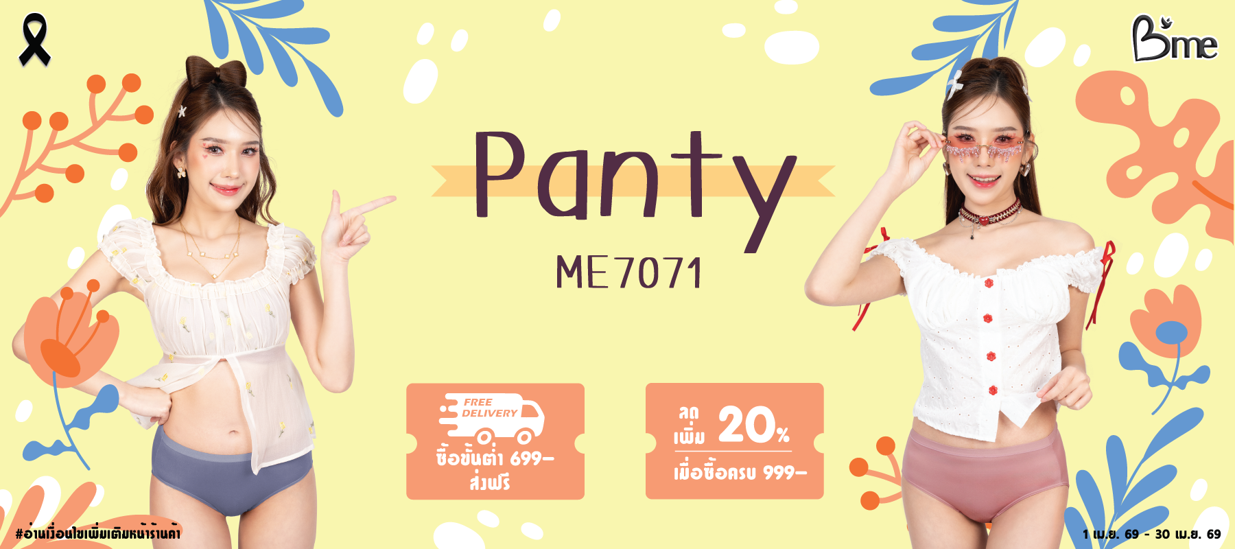 B'me กางเกงใน ไม่เข้าร่องก้น รุ่น ME7067