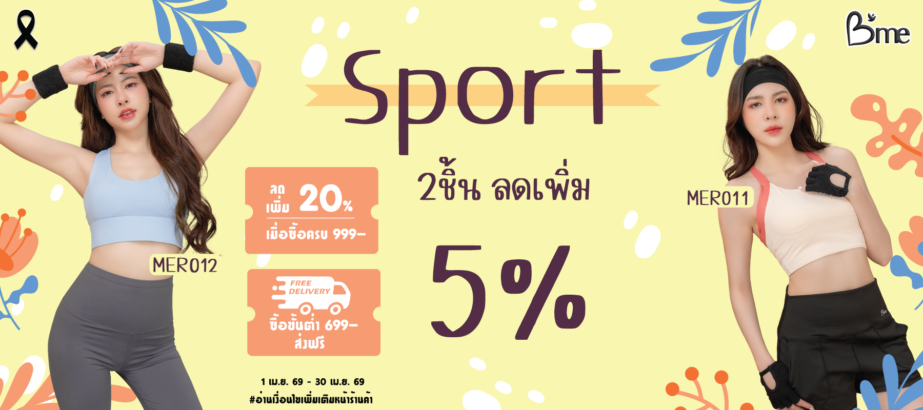 B'me กางเกงเลกกิ้งขาสั้น รุ่น MER309 สีดำ สีเทา สีม่วง