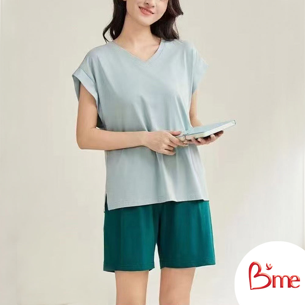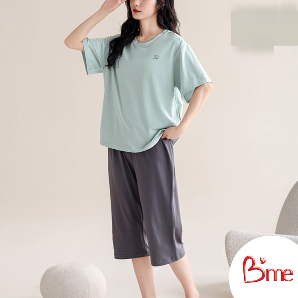 B'me ชุดเซ็ตรูปแบบเสื้อแขนสั้นคอกลม พร้อมกางเกงขายาว รุ่น ME8820 มี 2 สี สีน้ำตาล สีเขียว