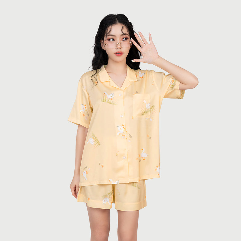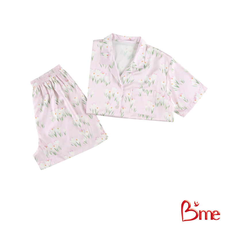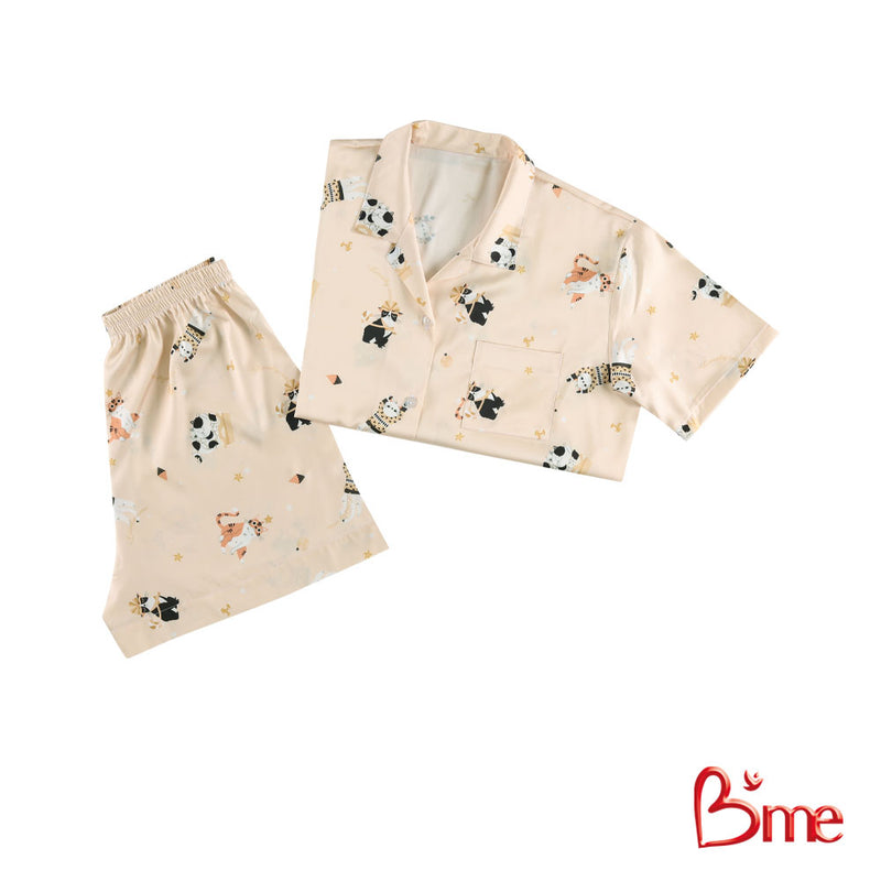 B'me ชุดนอนเสื้อแขนสั้นพร้อมกางเกงขาสั้น คอฮาวาย รุ่น ME8804 มี 4 สี สีฟ้าลายดอกไม้ สีม่วงลายดอกไม้ สีเขียวลายน้องหมา สีฟ้าลายน้องหมา M.10.25
