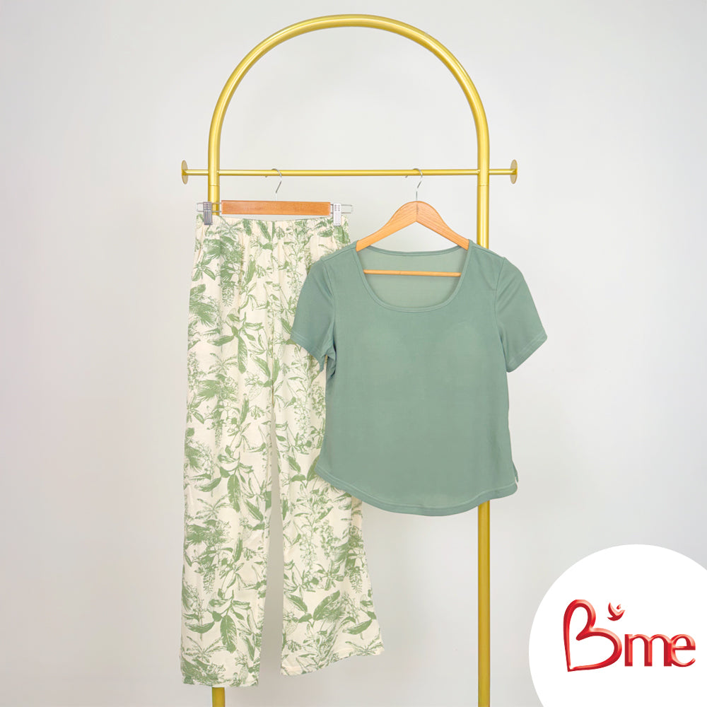 B'me ชุดเซ็ตรูปแบบเสื้อแขนสั้นคอกลม พร้อมกางเกงขายาว รุ่น ME8820 มี 2 สี สีน้ำตาล สีเขียว