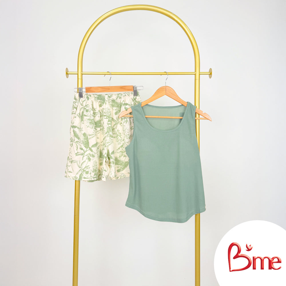B'me ชุดเซ็ตรูปแบบเสื้อเสื้อแขนกุด พร้อมกางเกงขาสั้น รุ่น ME8821 มี 2 สี สีน้ำตาล สีเขียว