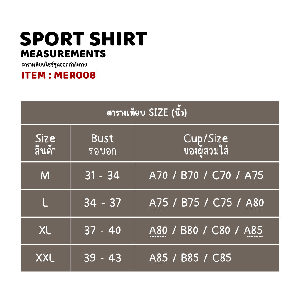 จุดเด่นสินค้า : เสื้อออกกำลังกายไม่มีโครง ด้านในเสริม PAD